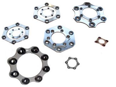 膜片聯(lián)軸器是由幾組聯(lián)軸器膜片(不銹鋼薄扳)用螺栓交錯(cuò)地與兩半聯(lián)軸器聯(lián)接,每組膜片由數(shù)片疊集而成,膜片分為連桿式和不同形狀的整片式。